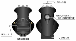手が使えない時に便利なクリップ付きのLEDライト。鞄や帽子に付けて、暗闇の移動も安心です。